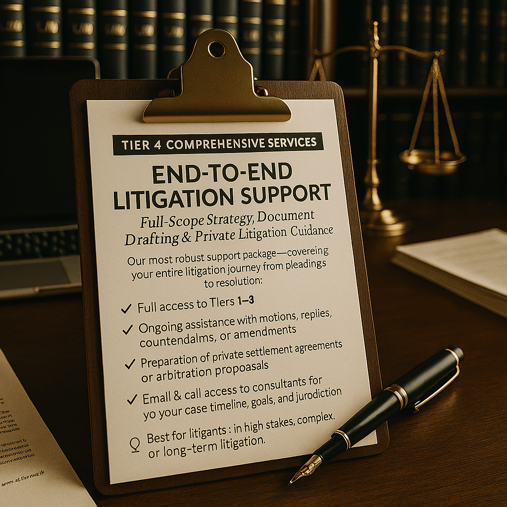 Our most robust support package—covering your entire litigation journey from pleadings to resolution.